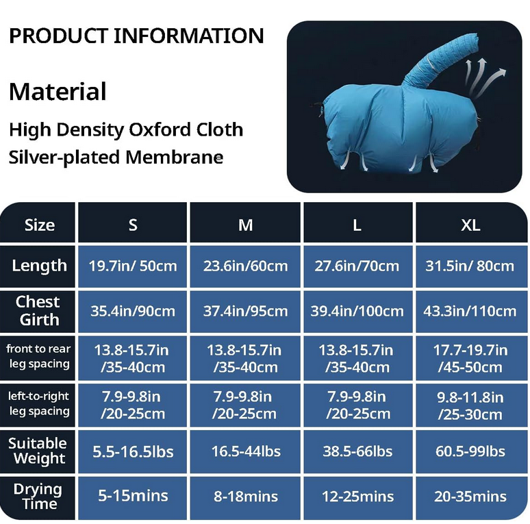 Seguro: nuestra bolsa para secadora cuenta con una membrana interior plateada para una disipación eficiente del calor, evitando el sobrecalentamiento y manteniendo a tu amigo peludo seguro.